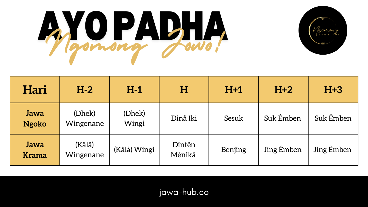 Kalau dah clear perbezaan dalam bahasa Melayu & bahasa Indonesia, jom kita telusuri pula istilah tersebut dalam versi bahasa Jawa Ngoko & Jawa Krama pulak.